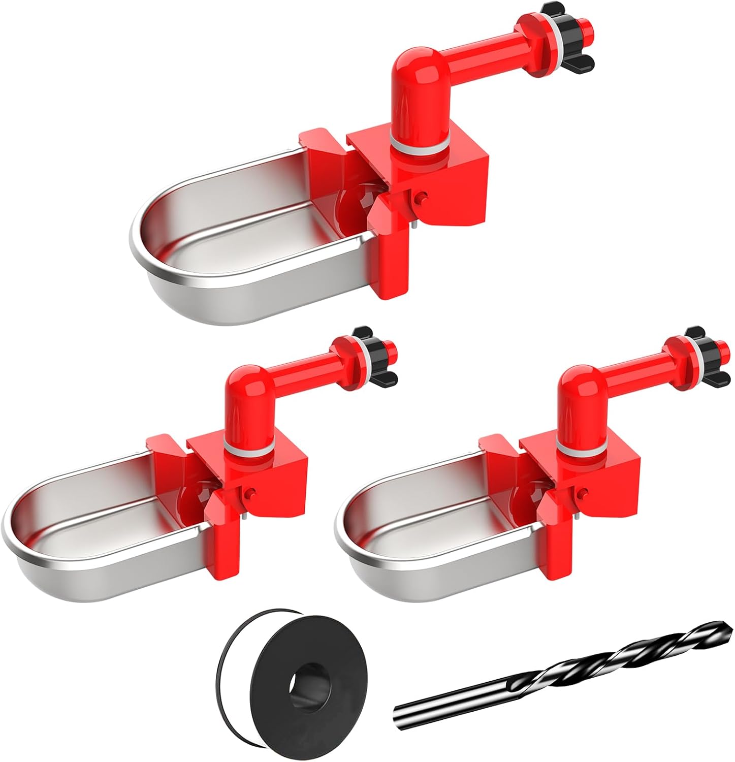 Metal Rabbit Chicken Water Cup Chicken Kettle DIY Chicken Small Hamster Guinea Pig Rabbit (red, 3)