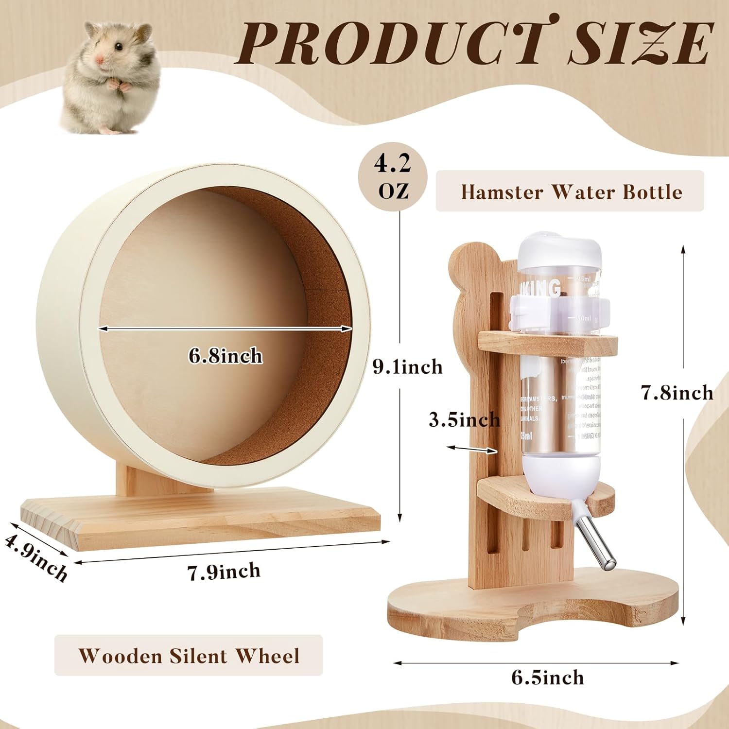 - Versatile Set to Meet Various Needs: this hamster silent wheel and hamster water dispenser set meets various needs of your pet; While quenching their thirst, it also provides ample opportunity for exercise, contributing to their balance and agility; As a result, it saves you time from searching for pet equipment separately and makes a delightful pet gift for yourself, friend, or family; Achieving such versatility has never been made easier
