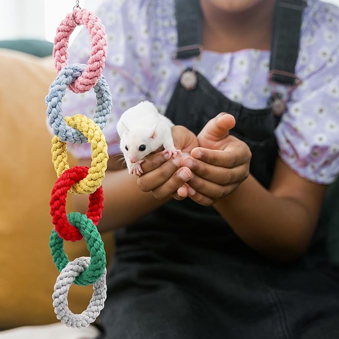 - 【Climbing Toys】: This hanging cotton rope ring climbing toy is designed to provide hours of entertainment and physical activity for your little climbers. Ideal for sugar gliders, rats, squirrels, birds, and other small pets who enjoy exploring and climbing.