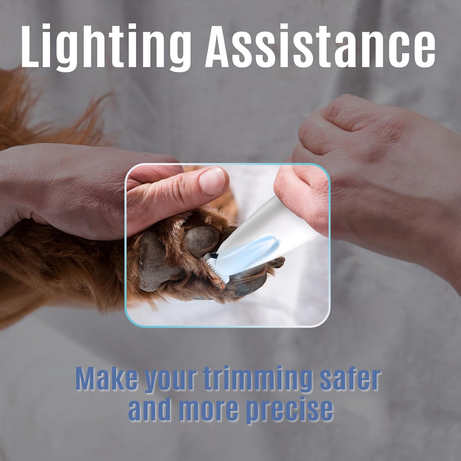 - 18MM R-Shape Blade Teeth & LED Light Design: Our dog paw trimmer feature wider 18mm blades for efficient trimming. The rounded blade teeth design ensures a smooth cut without scratching your pet, and the built-in LED light helps you accurately groom your pet's fur, paws, face, and body