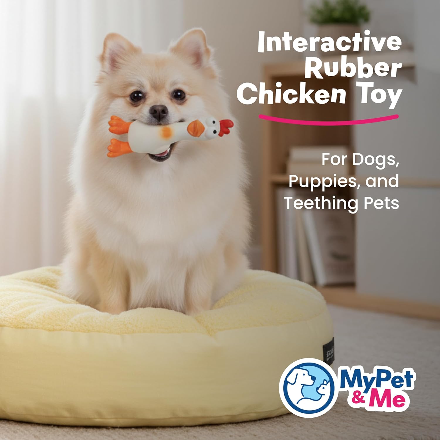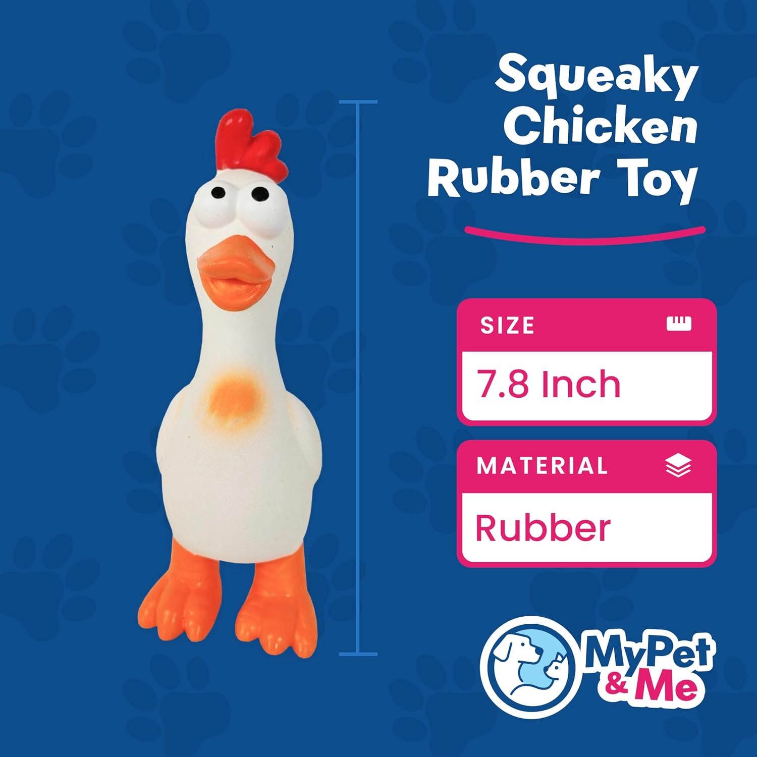 My Pet & Me - Squeaky Dog Toys for Light to Moderate Chewers - Fun Latex Toys for Puppies, Teething, and Gentle Play - Interactive Fetch and Chew Toy with Squeaker (White Chicken, 7.8 Inch)