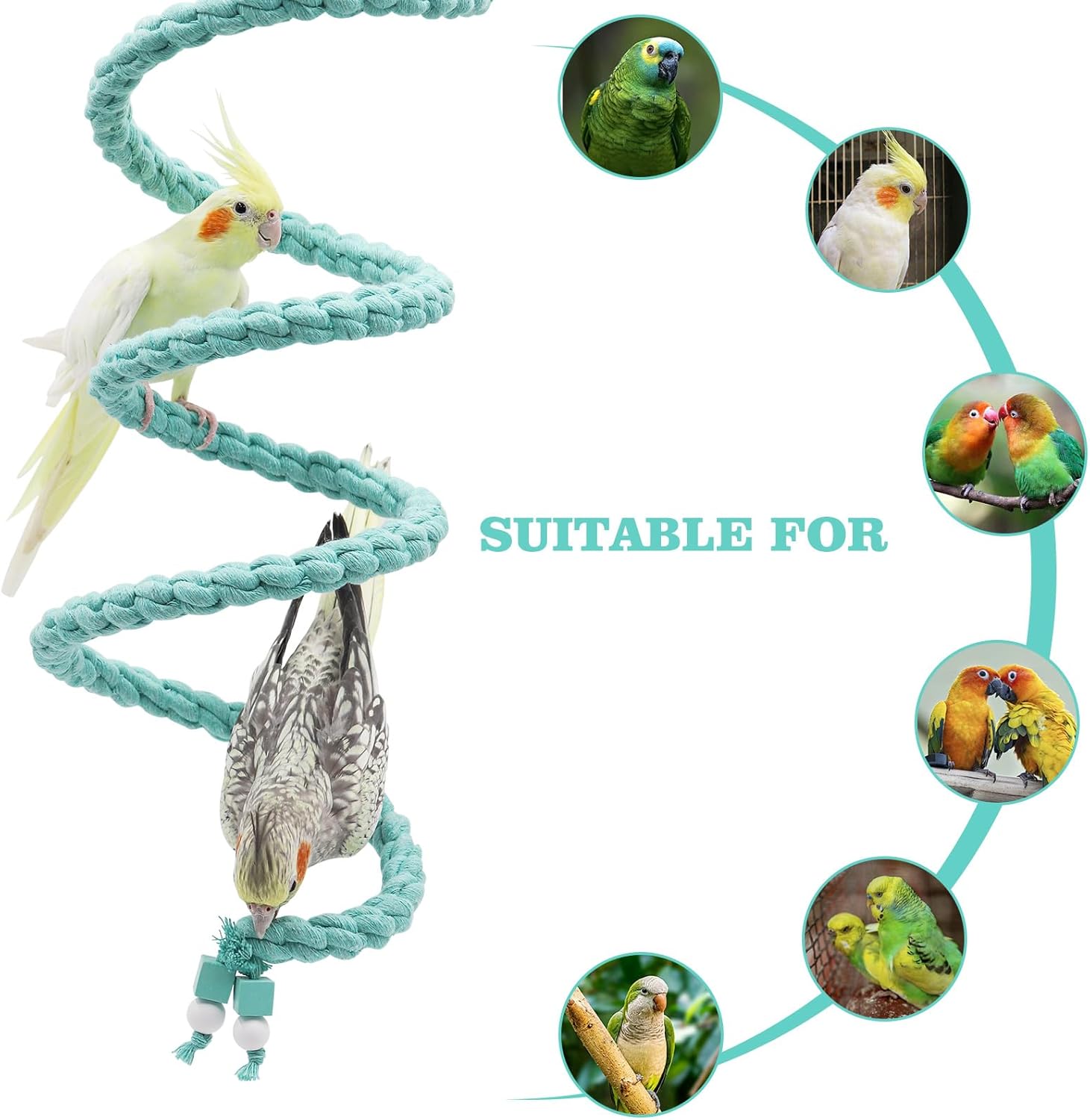 - 【Bird Cage Accessories】: Add a fun and functional accessory to your bird's home. This hanging spiral rope perch encourages exercise, play, and climbing, helping to keep your feathered friend entertained and active.