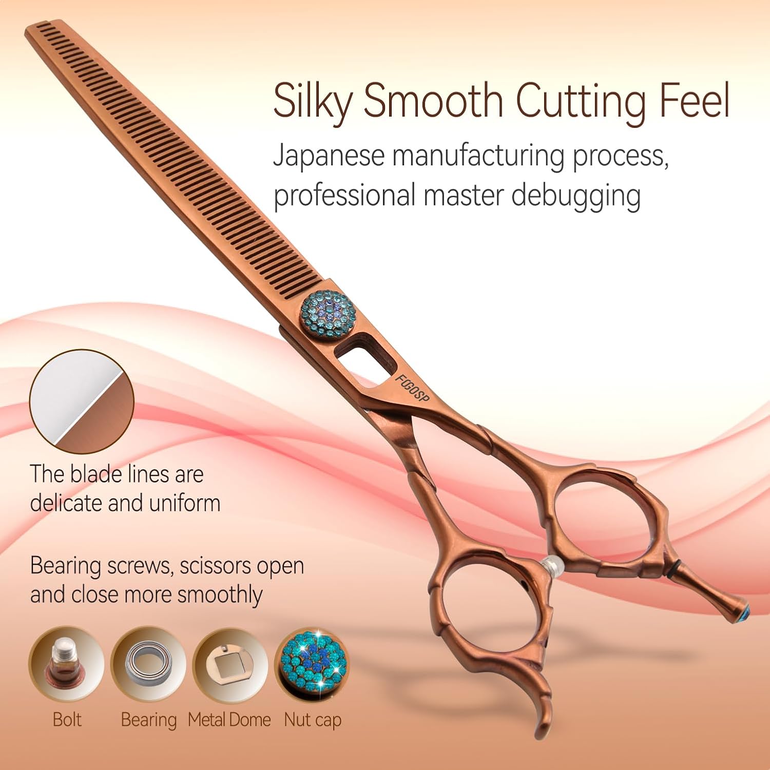 - π[Professional Quality] FOGOSP thinning shears for dogs are made of high quality high cobalt alloy steel and are very sharp and smooth, using these professional dog grooming scissors is like cutting butter with a hot knife. Good Tools Make You Enjoy Your Work Even More.