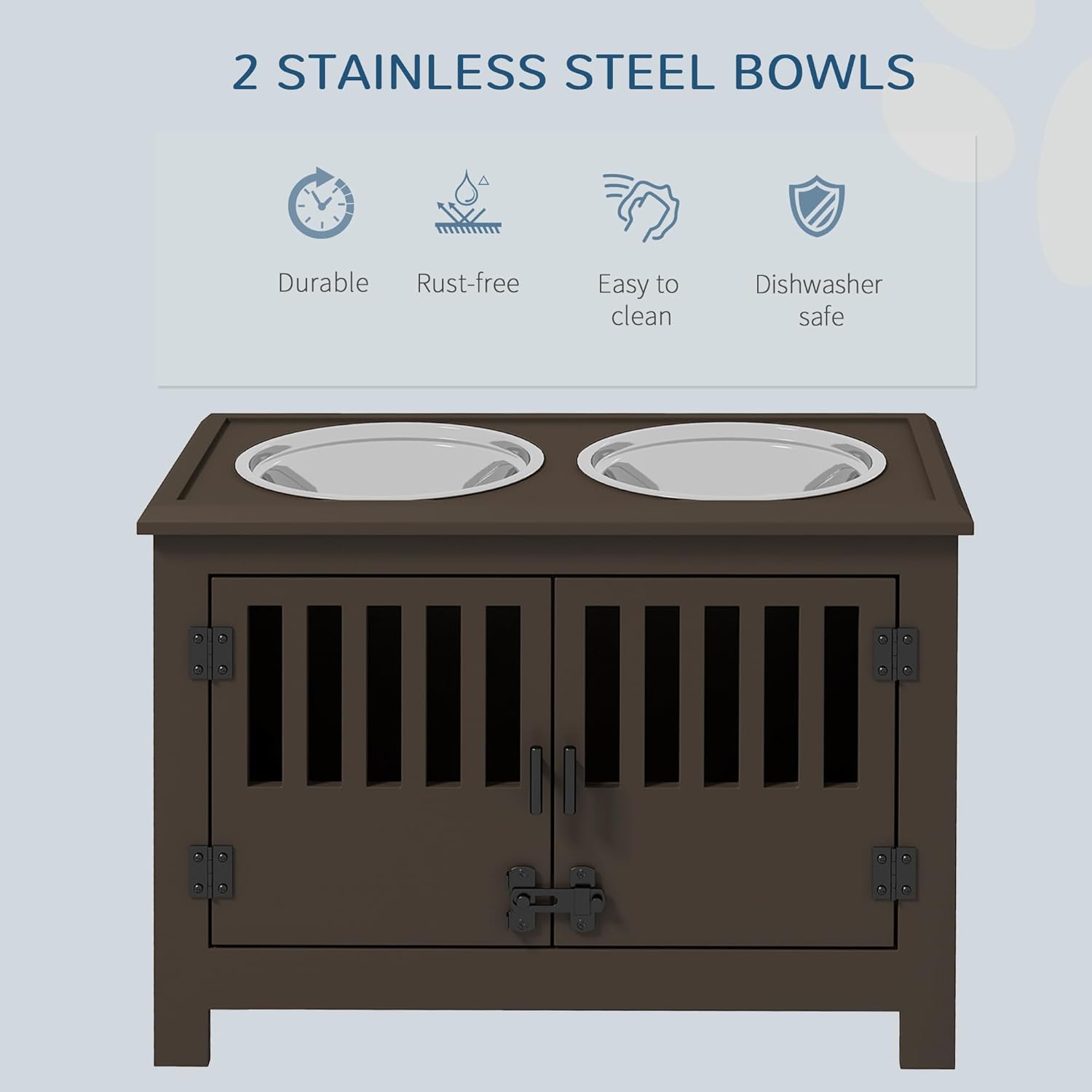 PawHut Large Elevated Dog Bowls with Storage Cabinet - 37L Capacity, Raised Dog Bowl Stand Feeding Station, Espresso