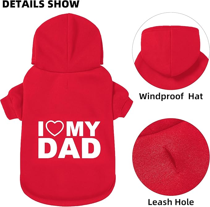 GreenJoy Dog Sweater Dog Hoodie Cold Weather Coat Hooded Sweatshirt for Puppies,Cats, Small Medium Large Dogs (Red(I Love My Dad), X-Small)