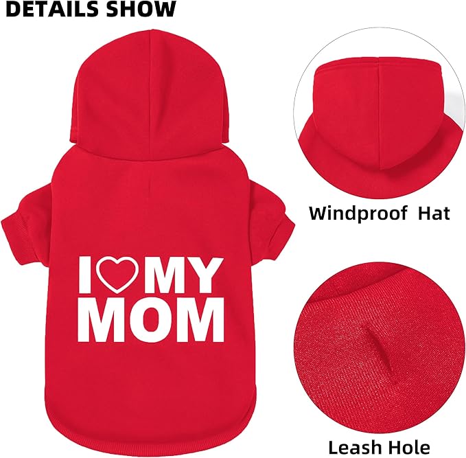 GreenJoy Dog Sweater Dog Hoodie Cold Weather Coat Hooded Sweatshirt for Puppies,Cats, Small Medium Large Dogs (Red(I Love My Mom), X-Small)
