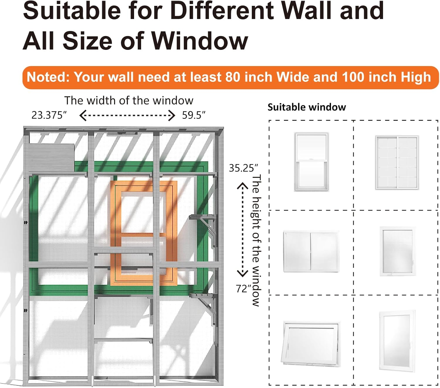 - Spacious Multi-Level Play Haven - Measuring 74.8"x33.5"x100", this window catio rivals a jungle gym with 4 platforms, a cozy sleeping box, and zigzag bridges. Perfect for multi-cat households—let them chase, leap, and nap in a clutter-free zone that doubles as a safe activity hub!