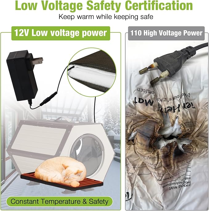 - Heated Cat House: Equipped with UL-test heated pad combined with flame retardant foam,meets high safety standards, provide safe and reliable warmth