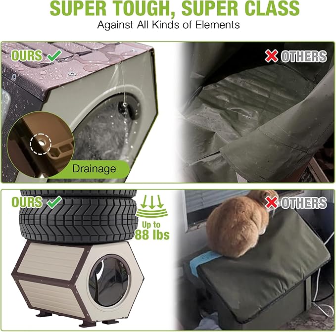 - Indestructible: Built with a highly sturdy PP material, this cat house withstands extreme weather and accidental impacts, ensuring outdoor pets' safety