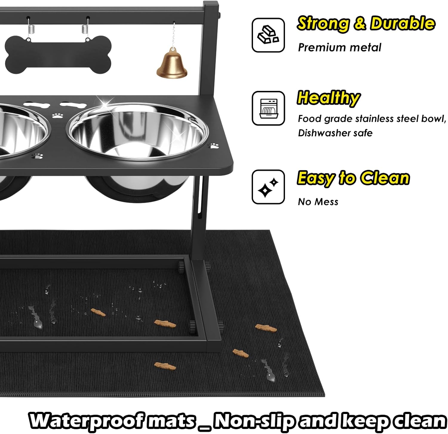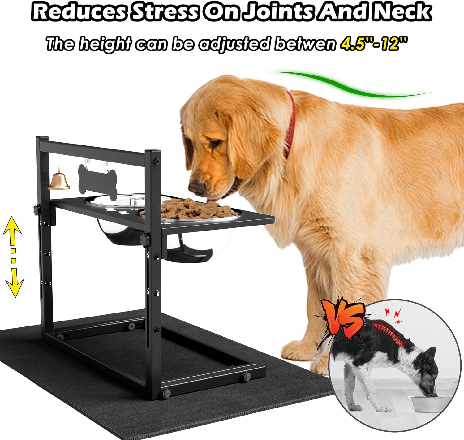 Elevated Dog Bowls With Mat, Adjustable Height 4.3-11.8'', Two 1.7L Stainless Steel Food & Water Bowls, Metal Raised Stand for Large, Medium Dogs