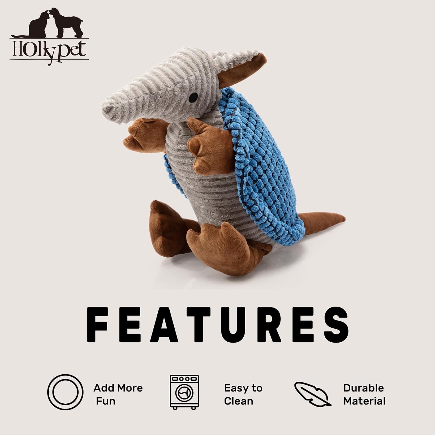 - Unique Sound - Hollypet Armadillo Squeak Toys (except 6 inch) make a sound that's not high pitched, but rather a unique and funny grunt sound that your furry friend will love. Unlike noisy bones, ropes, or other normal stuffed plush dog toys