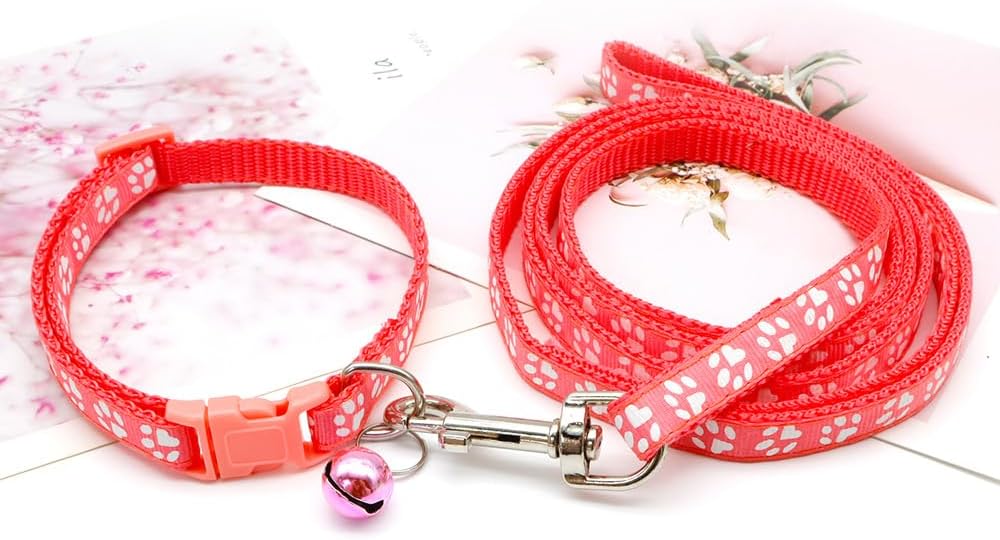 - 【Paw Print Dog Leash:】Paw print on both sides of the leash.The puppy collar with bell .With Pawprint pattern, quick-release buckles, durable nylon, reflective straps and ringing bells.