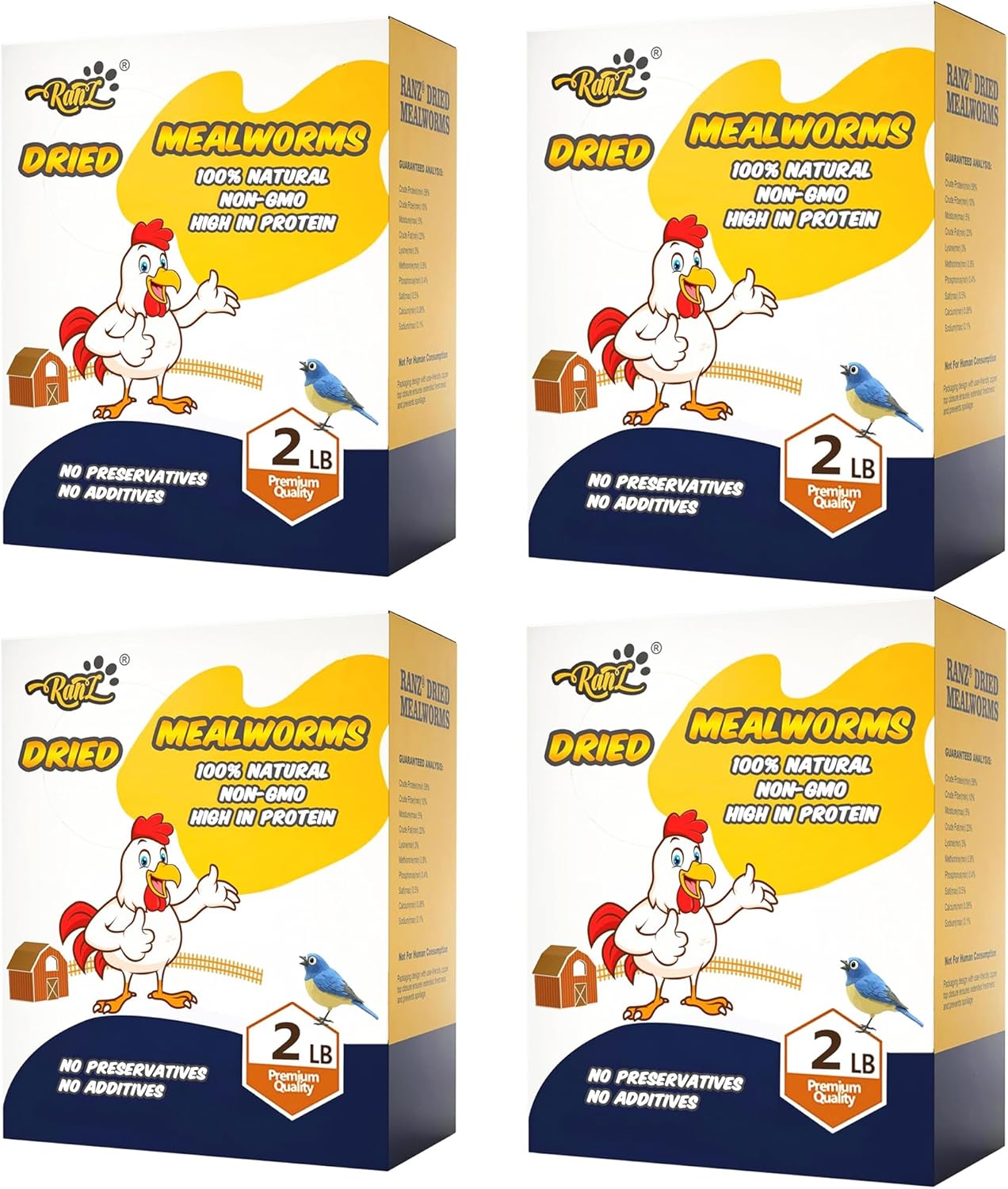 RANZ 8LBS Non-GMO Dried Mealworms for Chickens, High Protein Meal Worms, Premium Chicken Feed, Whole Large Mealworms for Blue Birds, Ducks, Fish