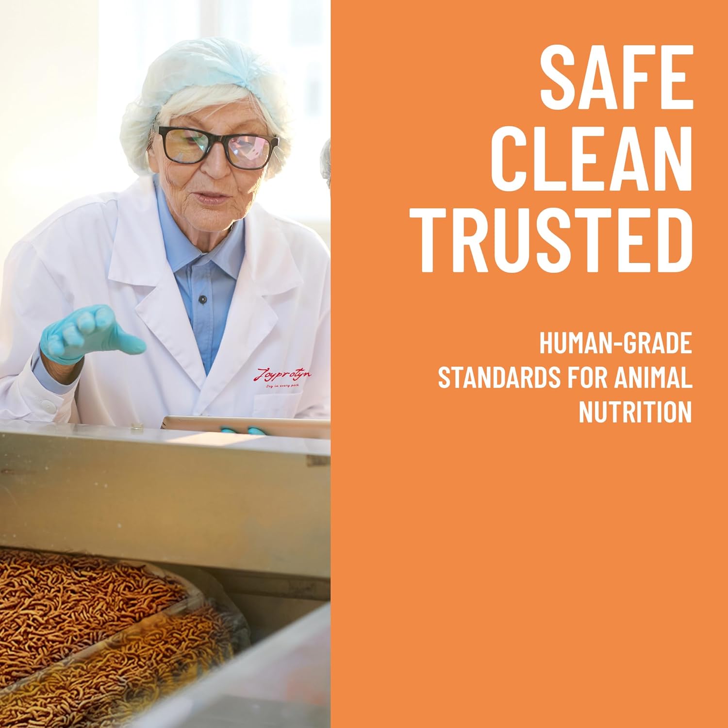 - High-Calcium Chicken Grubs: Joyprotyn’s BSFL (Black Soldier Fly Larvae) feed offers 85x the calcium of traditional dried mealworms, enhancing eggshell strength and promoting bone health in your hens for sturdy eggs. This high-calcium feed is perfect for robust egg production and overall poultry well-being.