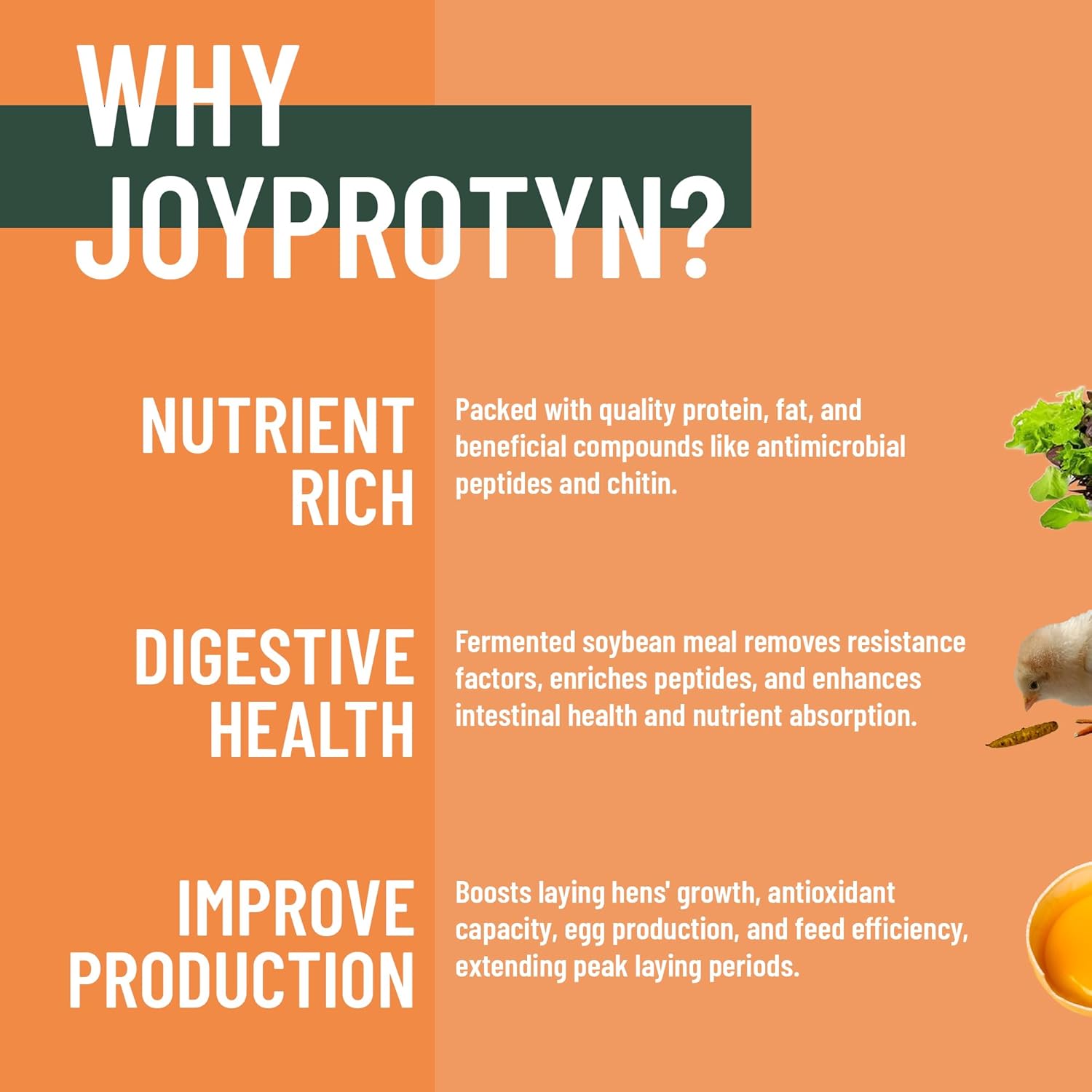 - Worry-Free After-Sales Service: At Joyprotyn, your satisfaction is our priority. Each 2LB bag provides ample supply for your flock, and if you’re not fully satisfied with our premium BSFL feed, our dedicated customer service team is here to ensure a solution. Enjoy peace of mind with Joyprotyn’s high-quality, nutritious feed for worry-free feeding.