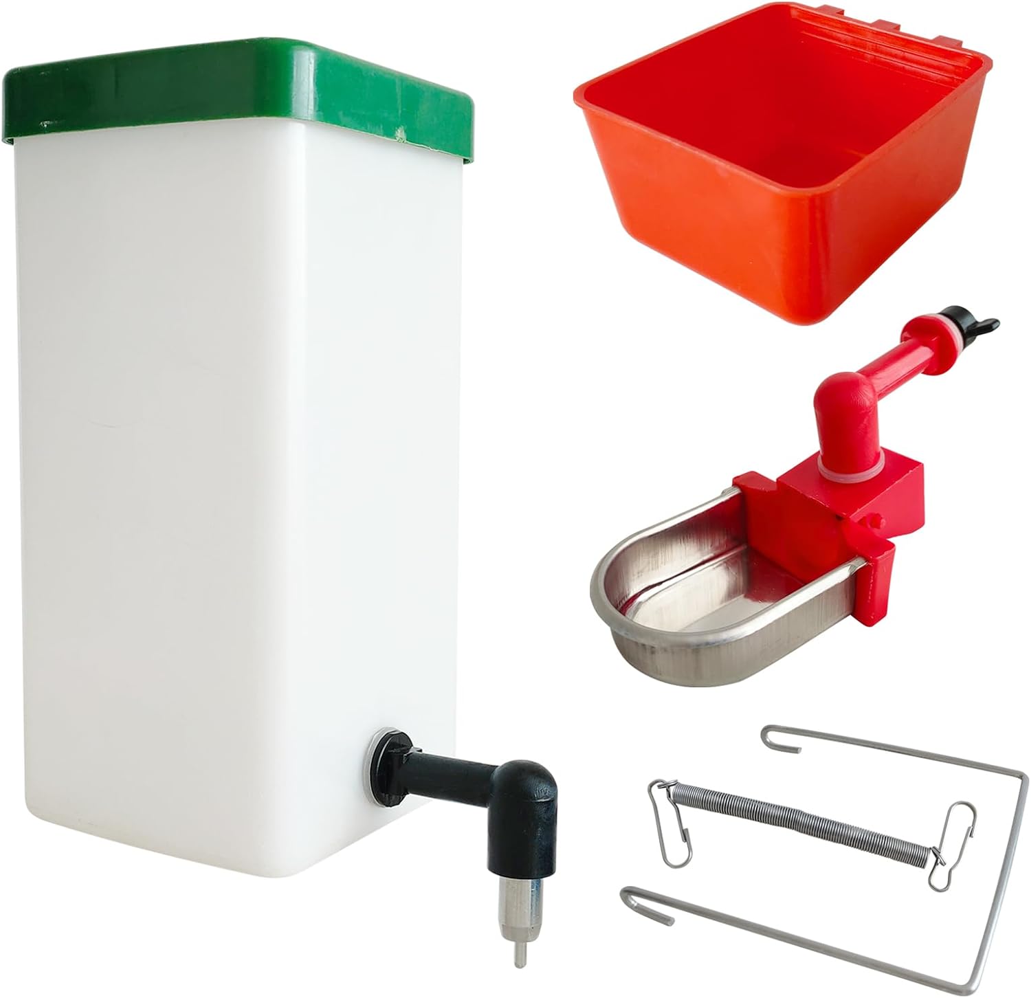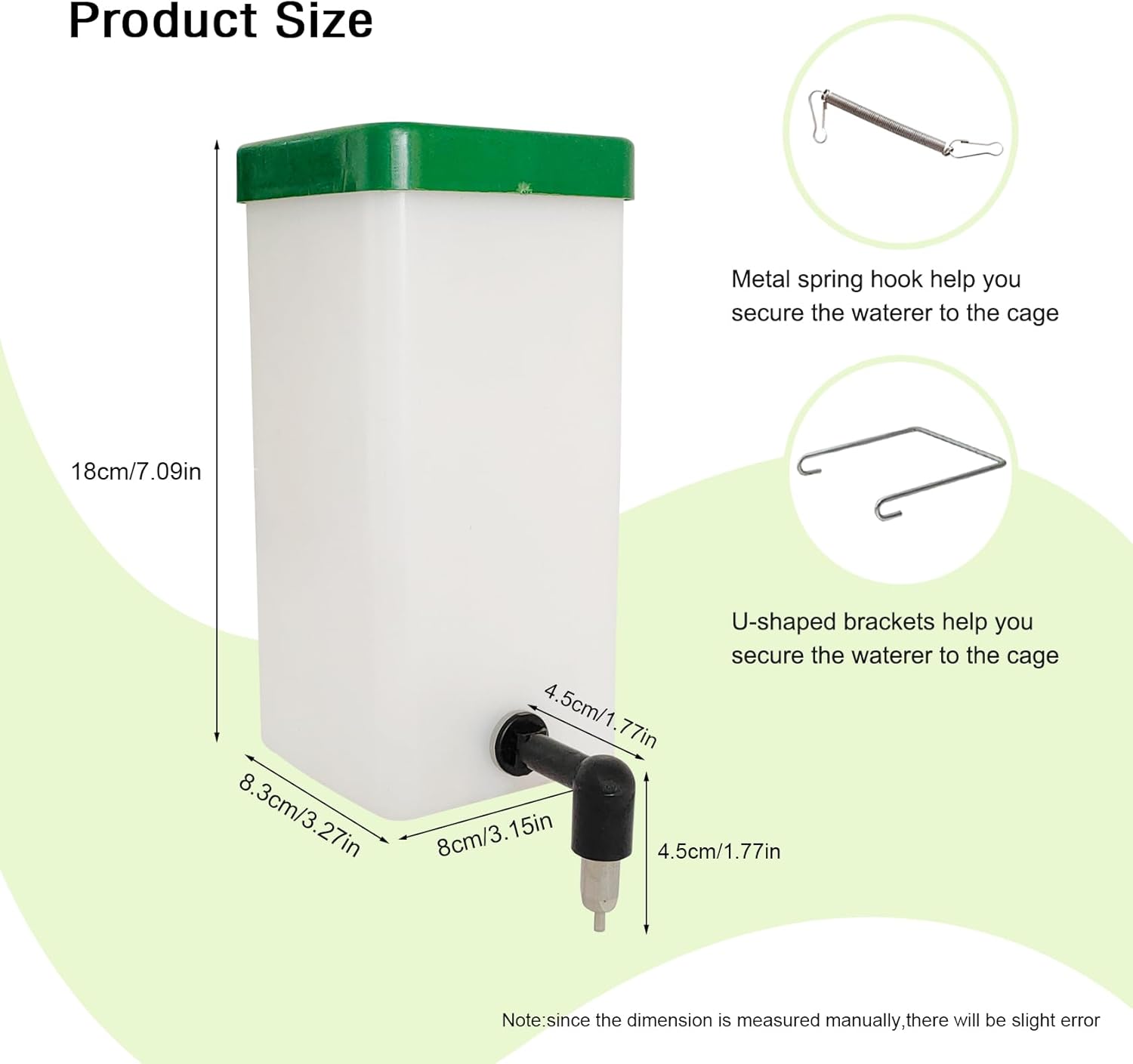 - It can satisfy the drinking and feeding needs of small animals at the same time! It contains a spring (1 piece), a hook (1 piece), a nipple waterer (1 piece), a metal drinking bowl (1 piece), and a plastic feeding bowl (1 piece).
