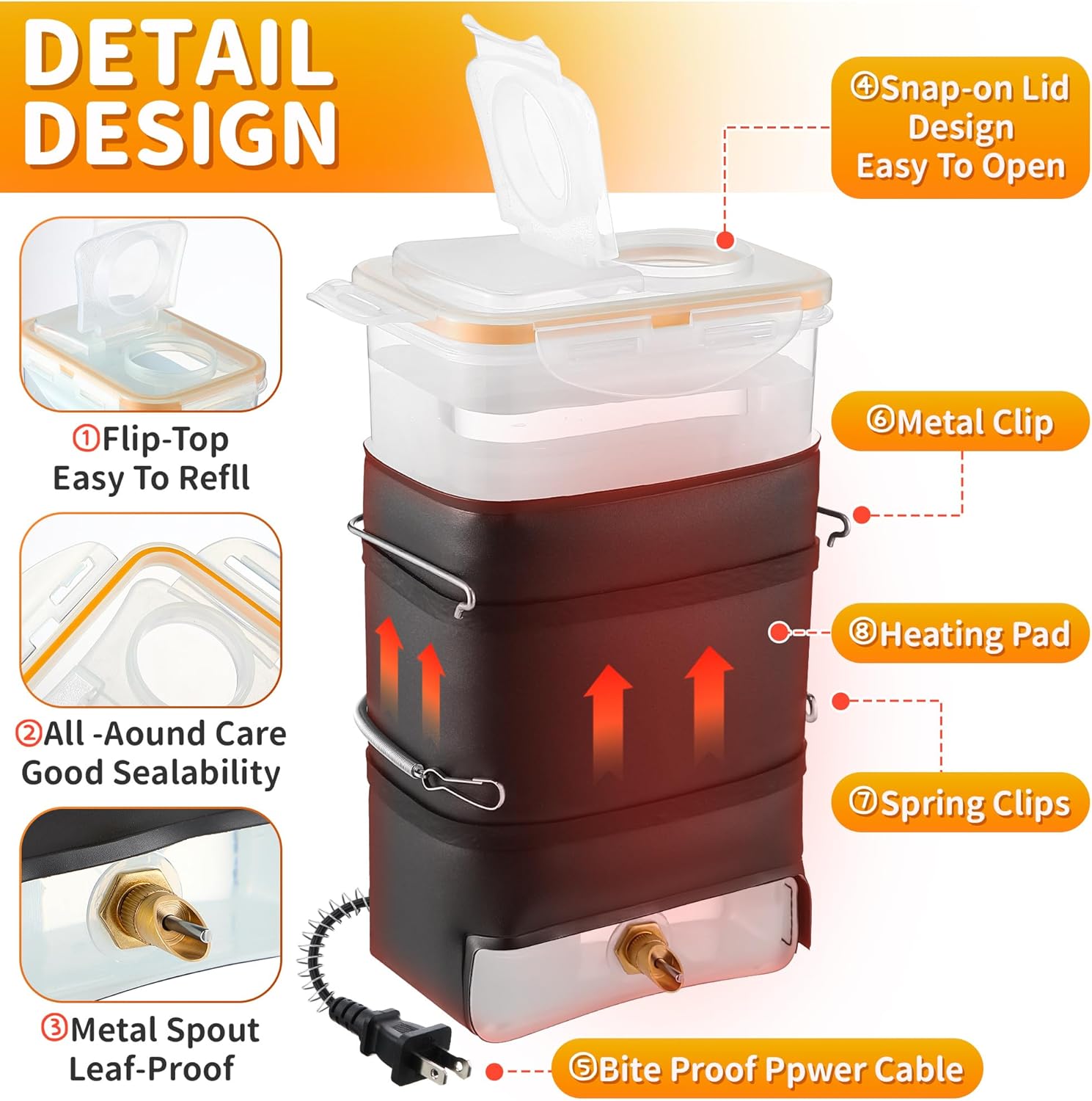 - ๐ฐใPackage Includedใ2 Pack 74 oz heated poultry drinker, the water bottle size: 5.91 x 4.33 x 9.84 inches, with a 3.94 ft 28w power cord and 2 spring clip, 2 wire drinker holder; The heated water bottle for rabbits, hamsters, guinea pigs, ferrets, birds, mice, cockatiels, gerbil, and other small animal pets to drink water