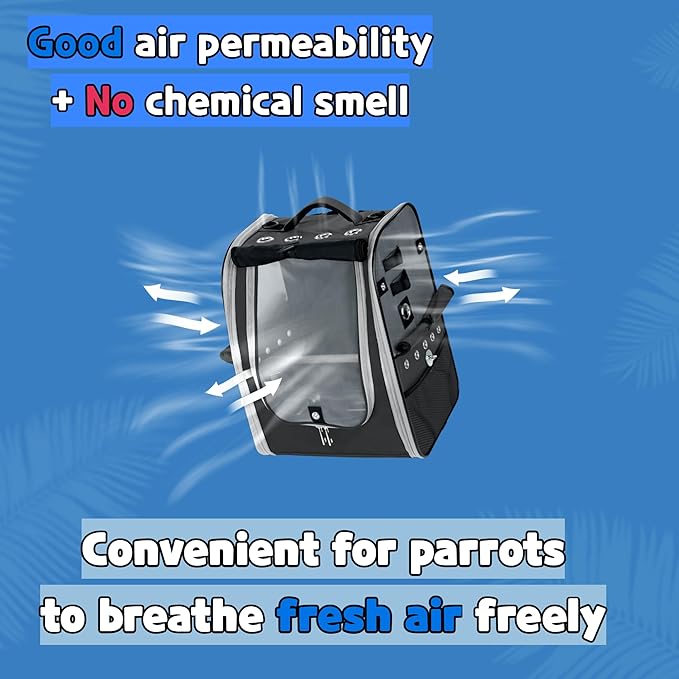 - 😊【Comfortable Breathing】 Birds have sensitive respiratory systems, so it's important they get fresh air. Our carrier’s three-sided mesh and ventilation holes ensure your bird can always breathe clean air—without any chemical smells commonly found in other carriers.