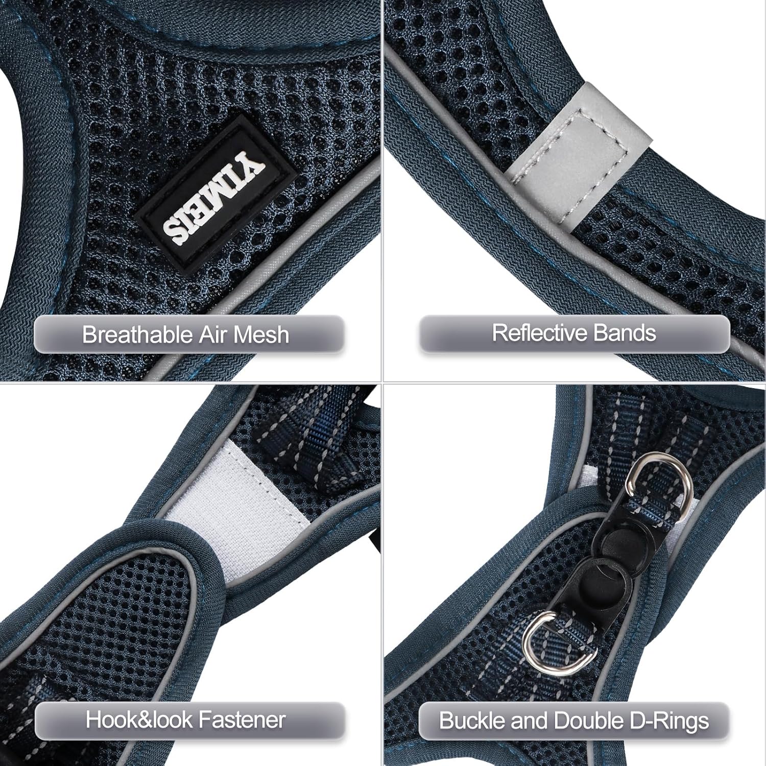 YIMEIS Dog Harness and Leash Set, No Pull Soft Mesh Pet Harness, Reflective Adjustable Puppy Vest for Small Medium Large Dogs, Cats (Navy, X-Small (Pack of 1)