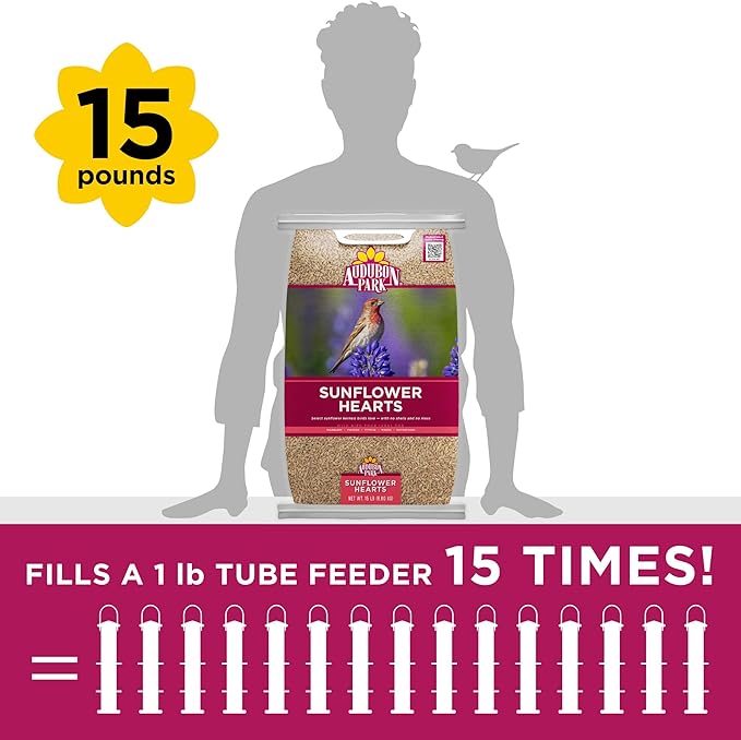 Audubon Park Sunflower Hearts Wild Bird Seed for Outside Feeders, 15-lb. Bag