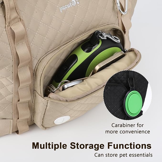 Pecute Dog Purse Carrier, Dog Carrier with Pockets for Small Dogs, Fits Dogs 5.5 lbs to 11 lbs, Cat and Puppies Tote Bag, Outing, Travel, Vet, Khaki