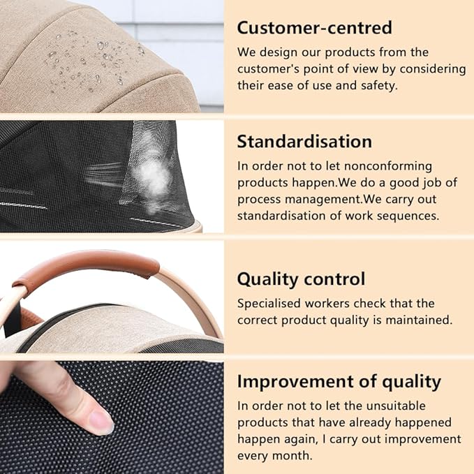 - SAFETY AND RELIABILITY: The four wheels are made of durable PU material to suit all occasions. The pushchair has large wheels and the front wheels can swivel 360°, these wheels not only ensure durability but also provide smooth and quiet operation. Whether you are walking on the sidewalk or on rough ground, our pet stroller will provide a comfortable and pleasant experience for your pet.