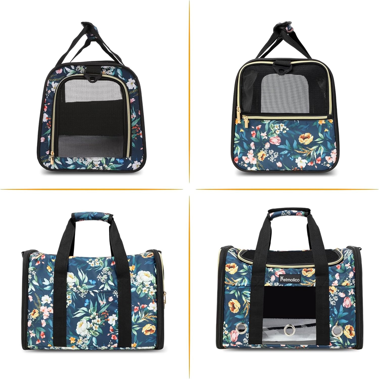 Petmolico Cat Carrier Soft-Sided Pet Bag for Small Medium Cats Puppies 16LBs - Airline Approved Pet Travel Carrier 3 Open Doors (Medium,Green Peony)