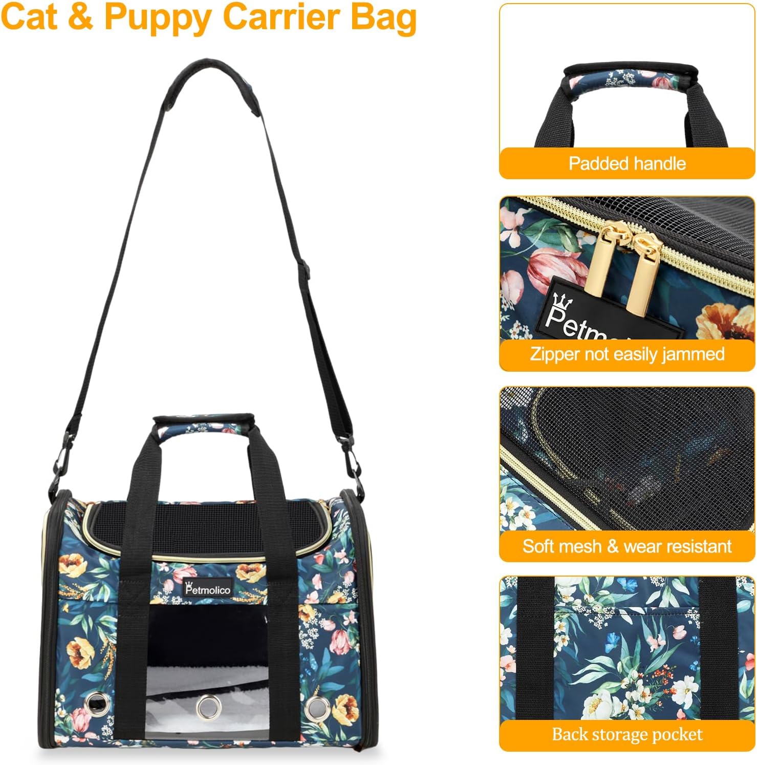- Airline Approved Cat Carrier: Petmolico pet cat carrier size: 16"L x 11"W x 11"H, suitable for cat puppy weight up to 16 lbs. It conforms to most domestic airline under-seat dimension guidelines. ( NOTE: Please contact your airline prior to booking a flight to ensure this pet carrier meets their specific requirements. )