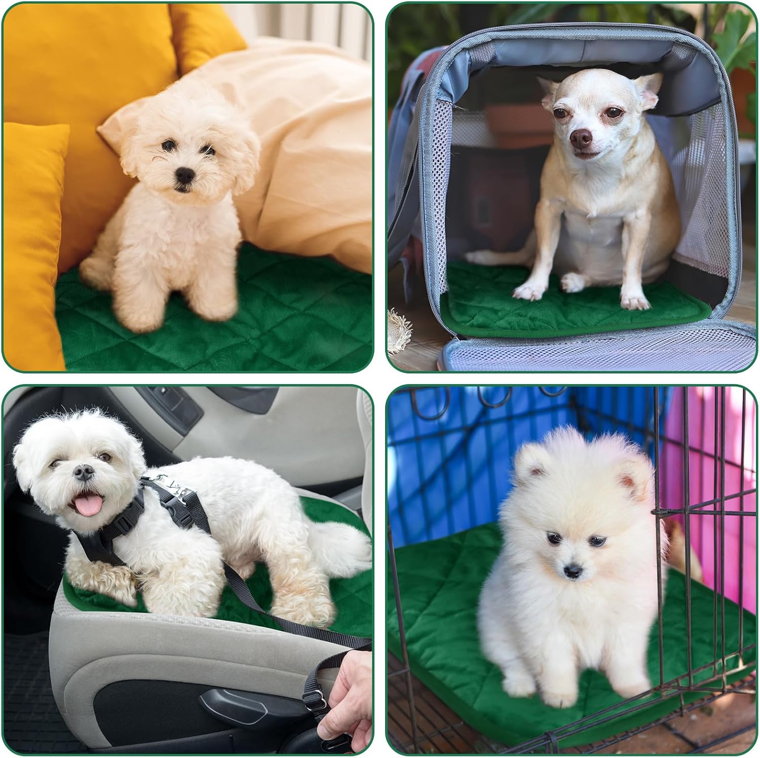 4 Pack Self Heating Cat Pad Self Warming Dog Mat Reflects Body Heat Extra Warm Thermal Pet Pad Washable Dog Cat Bed Crate Bed Mat Blanket(Dark Green,16 x 20 Inch)