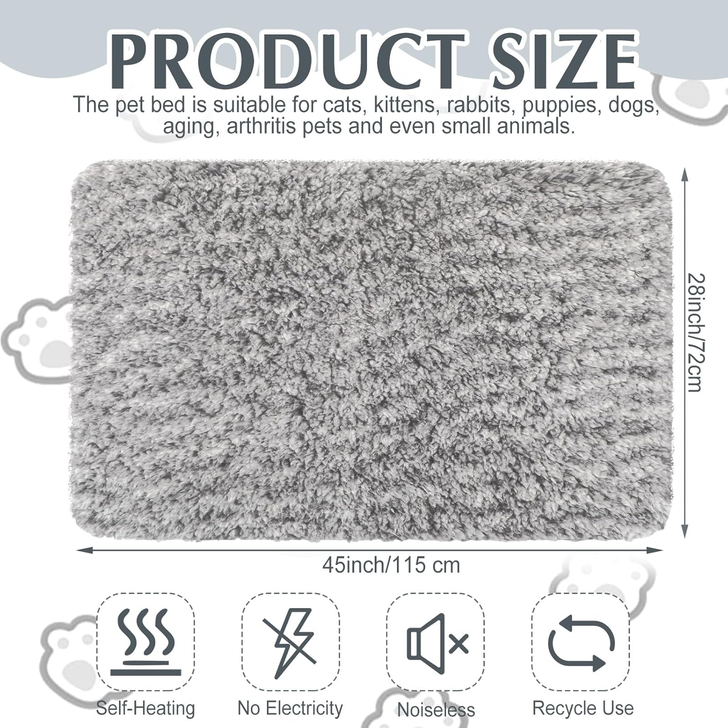 - Proper Size: you will receive 4 pack self heating cat pads in gray, each size is about 28 x 45 inches/ 72 x 115 cm, ideal for kittens, cats, puppies, dogs, aging and arthritic pets, can be applied on sofas, floors, pet beds, cat perches, pet carriers and outdoor cat houses; The cat warming pads are also ideal gifts for your friends who have pet