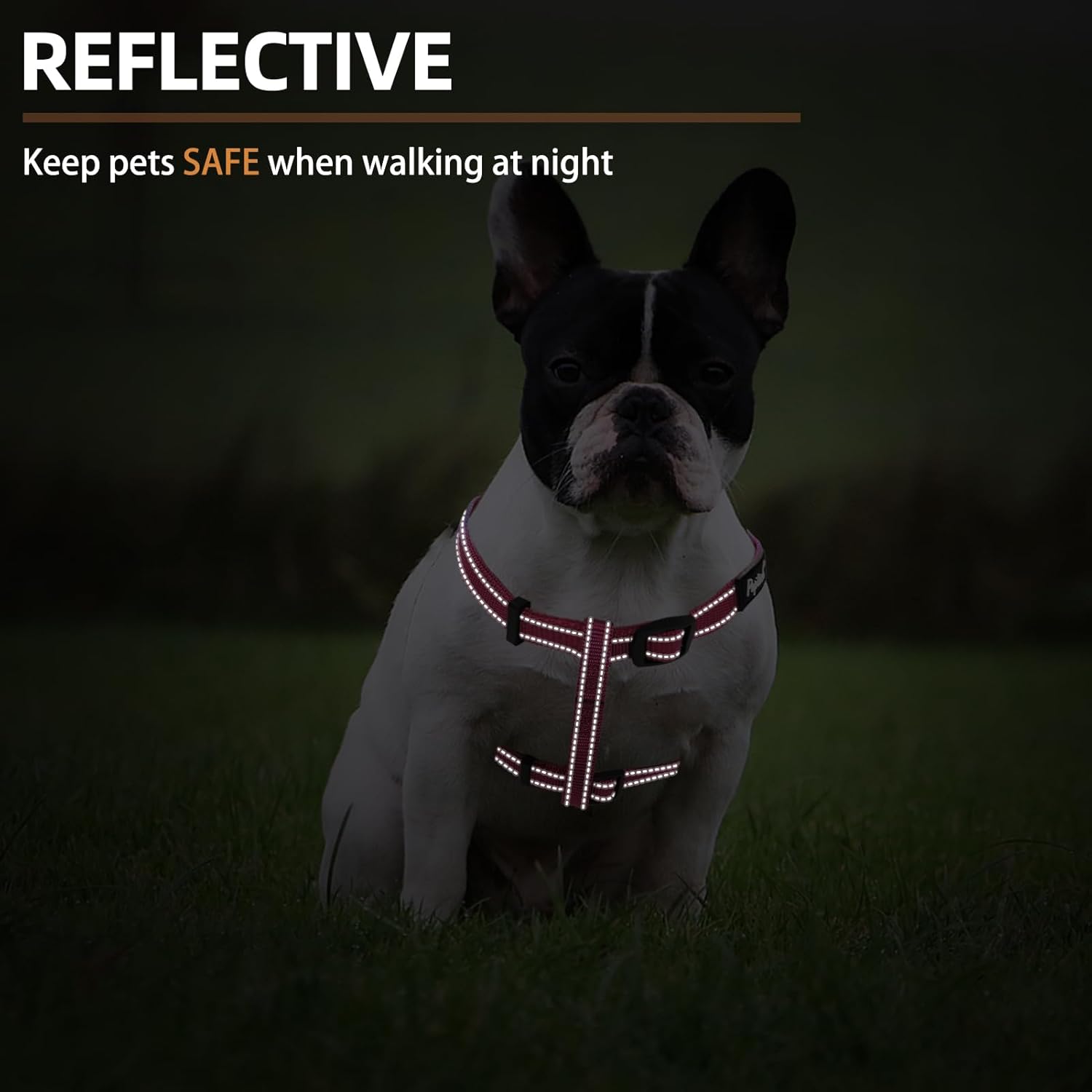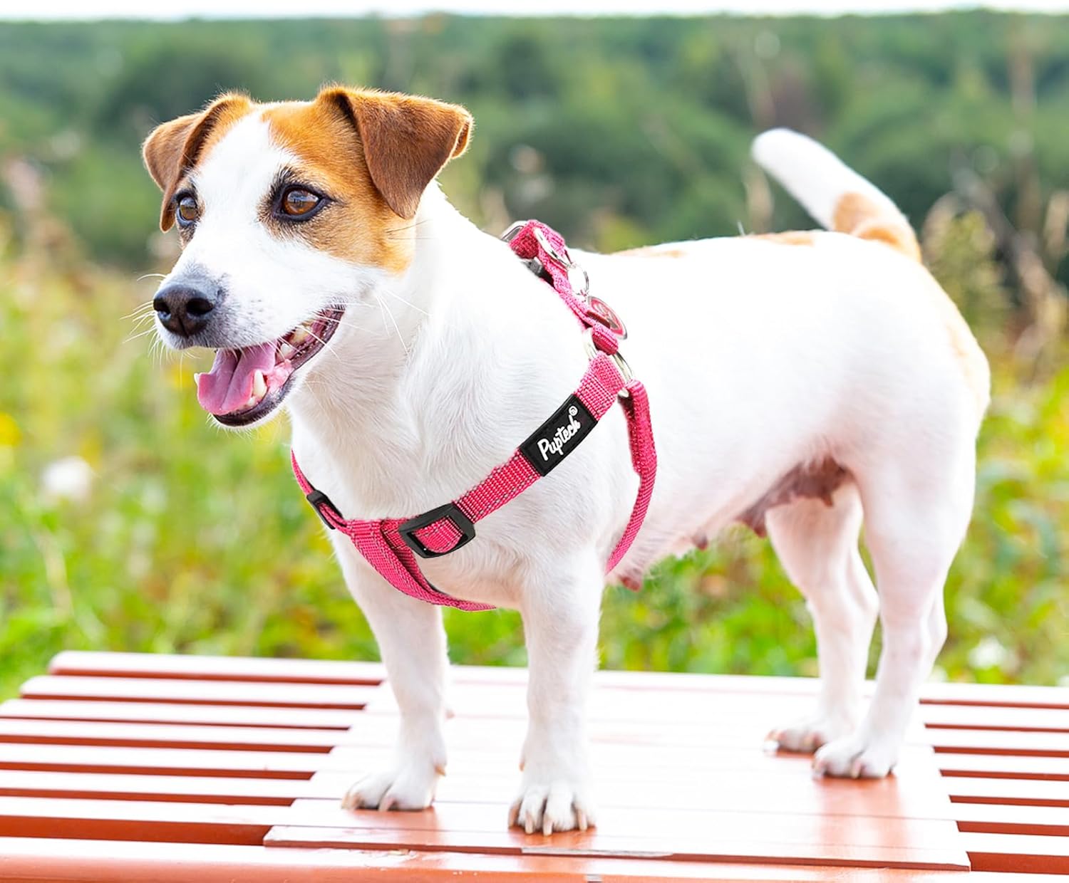 PUPTECK No Pull Dog Harness Soft Adjustable Basic Nylon Step in Puppy Vest Outdoor Walking with ID Tag, Reflecive Pink, S