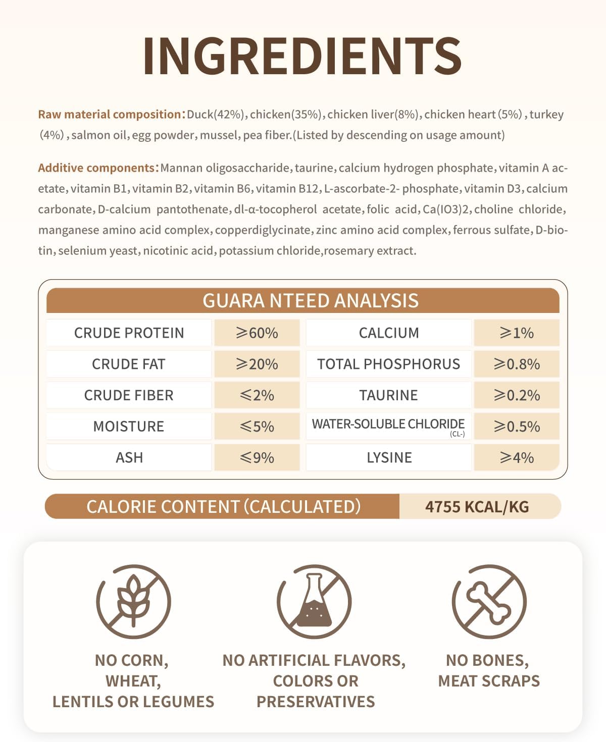 - 【Preserving raw nutrition the right way】 Freeze-dried to lock in nutrients without heat processing, our food gives the benefits of raw feeding with the convenience of shelf storage—no refrigeration required.