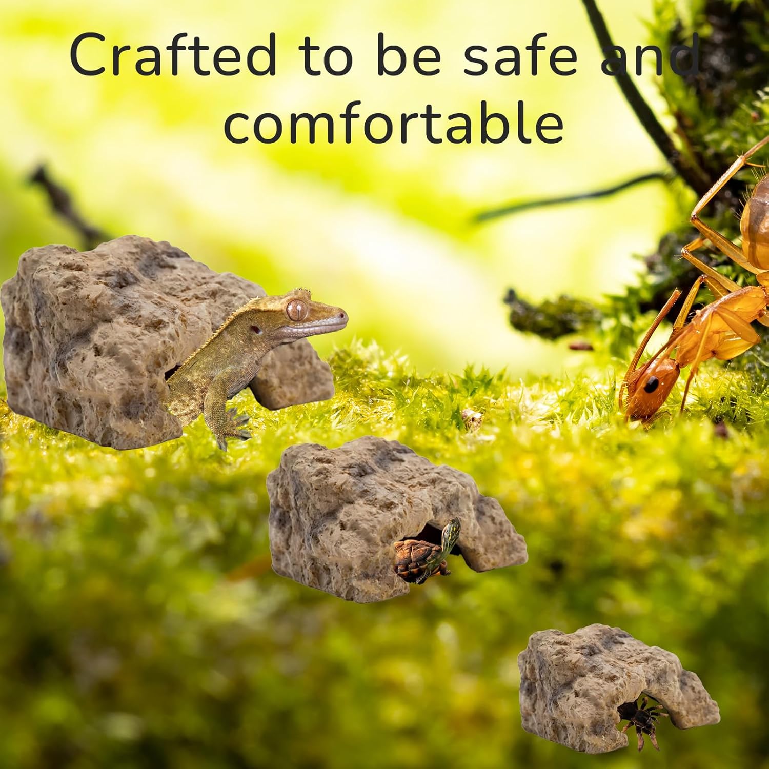 - Durable and Safe Materials: Crafted from non-toxic resin, this reptile hide ensures safety for your pets in both dry and humid environments. It is suitable for use in ball python tank, tortoise habitat accessories, or aquarium caves, and will not degrade or lose color over time, keeping your snake hides and gecko hide looking great