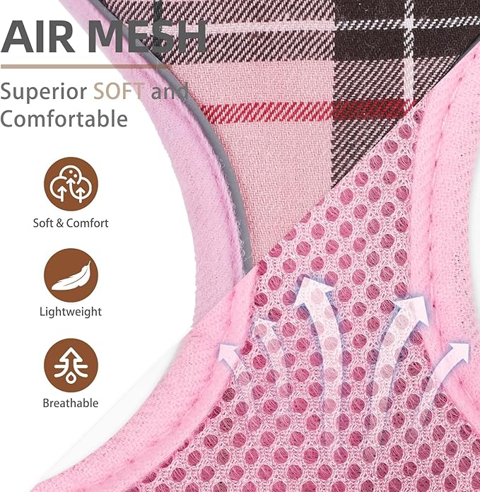 - DIFFERENT DESIGN: The harness is adopted with a plaid pattern which is designed by our internal brand team, so it's unique and very different from other normal harnesses. This plaid pattern looks both classic and stylish and is never out of date. It's great for everyday walking or going to a holiday party. It makes your furry friend look so lively and cute
