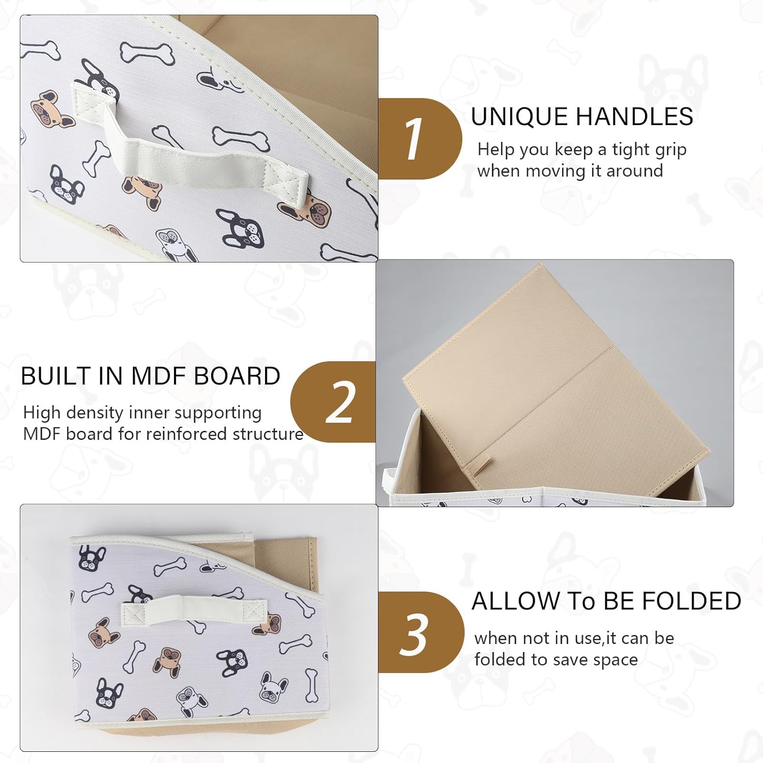 - 【Cute Decor】: These dog toy bin printed with cute dog pattern and bone pattern which can bring great decor for your room, or bedroom. With a function of collapsible design, This dog basket stands sturdy, with a bottom insert and reinforced seams, and folds flat for convenient storage and portability.