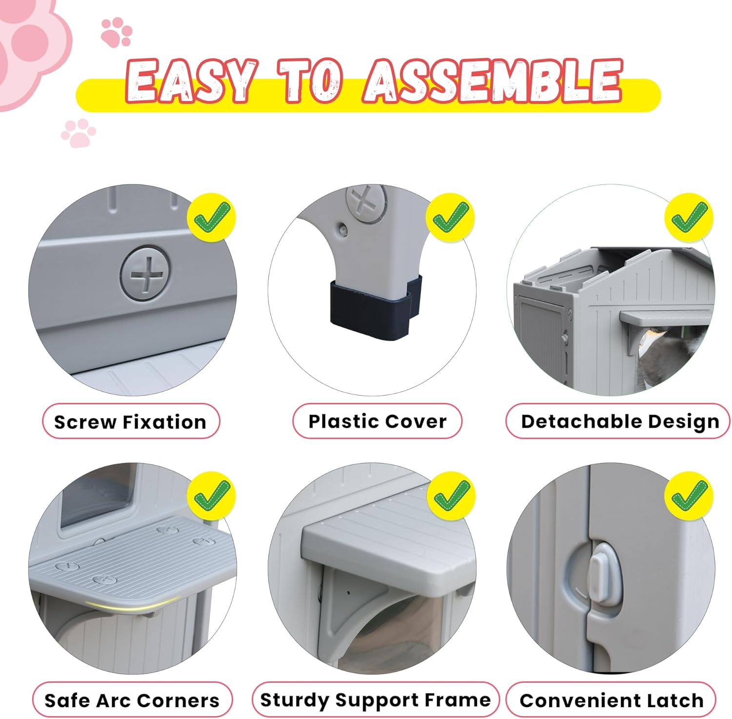 - Weather Resistance: The plastic roof withstands heavy rain and snow, keeping your beloved pet warm and dry at all times.