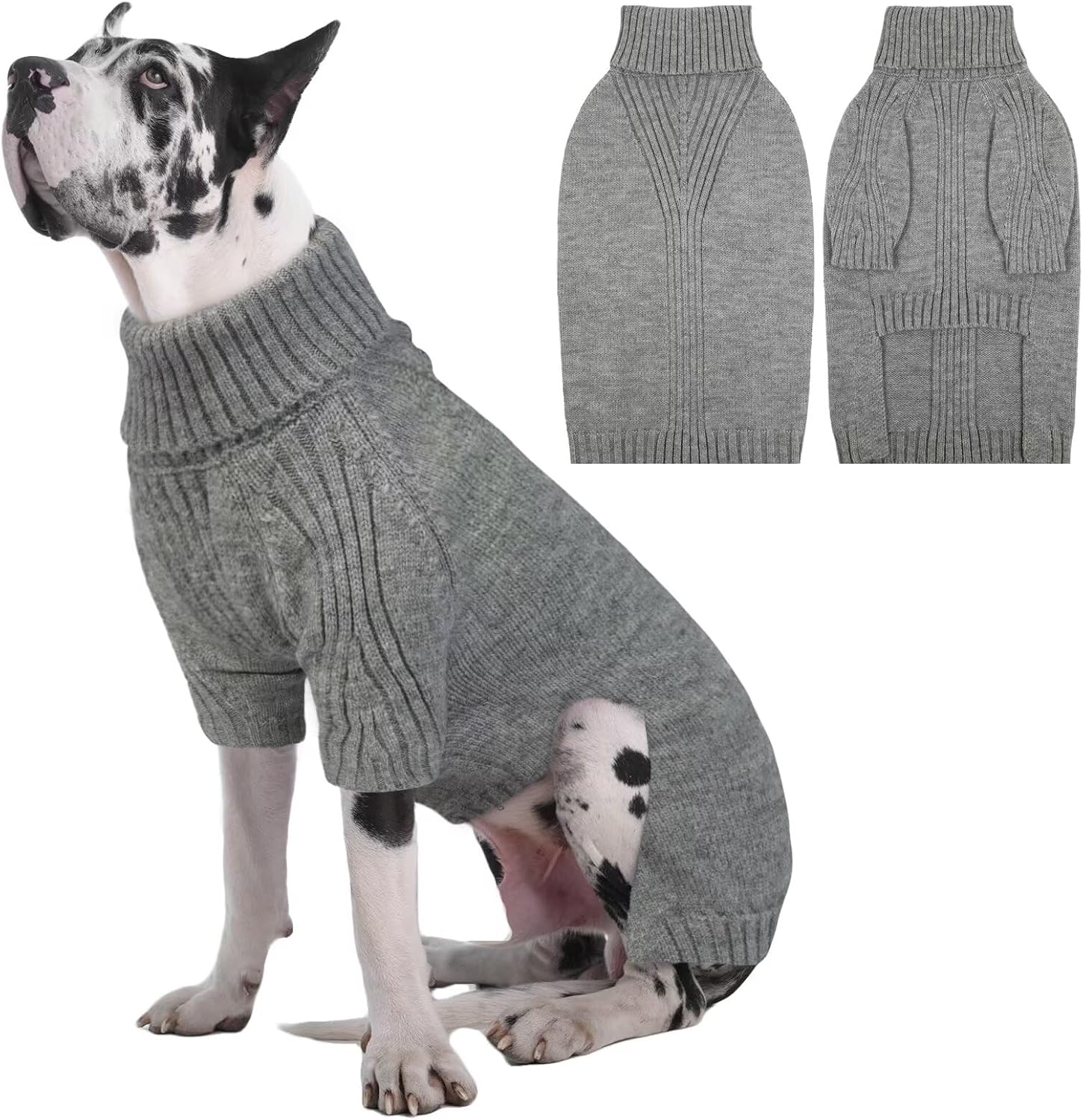 IECOii Great Dane Sweater,5XL Extra Large Sweater for Giant Breed Dogs in Winter,Turtleneck Cold Weather Knit Clothes,Machine Washable,Elastic Pullover for Saint Bernard,Mastiff (Light Grey,XXXXXL)