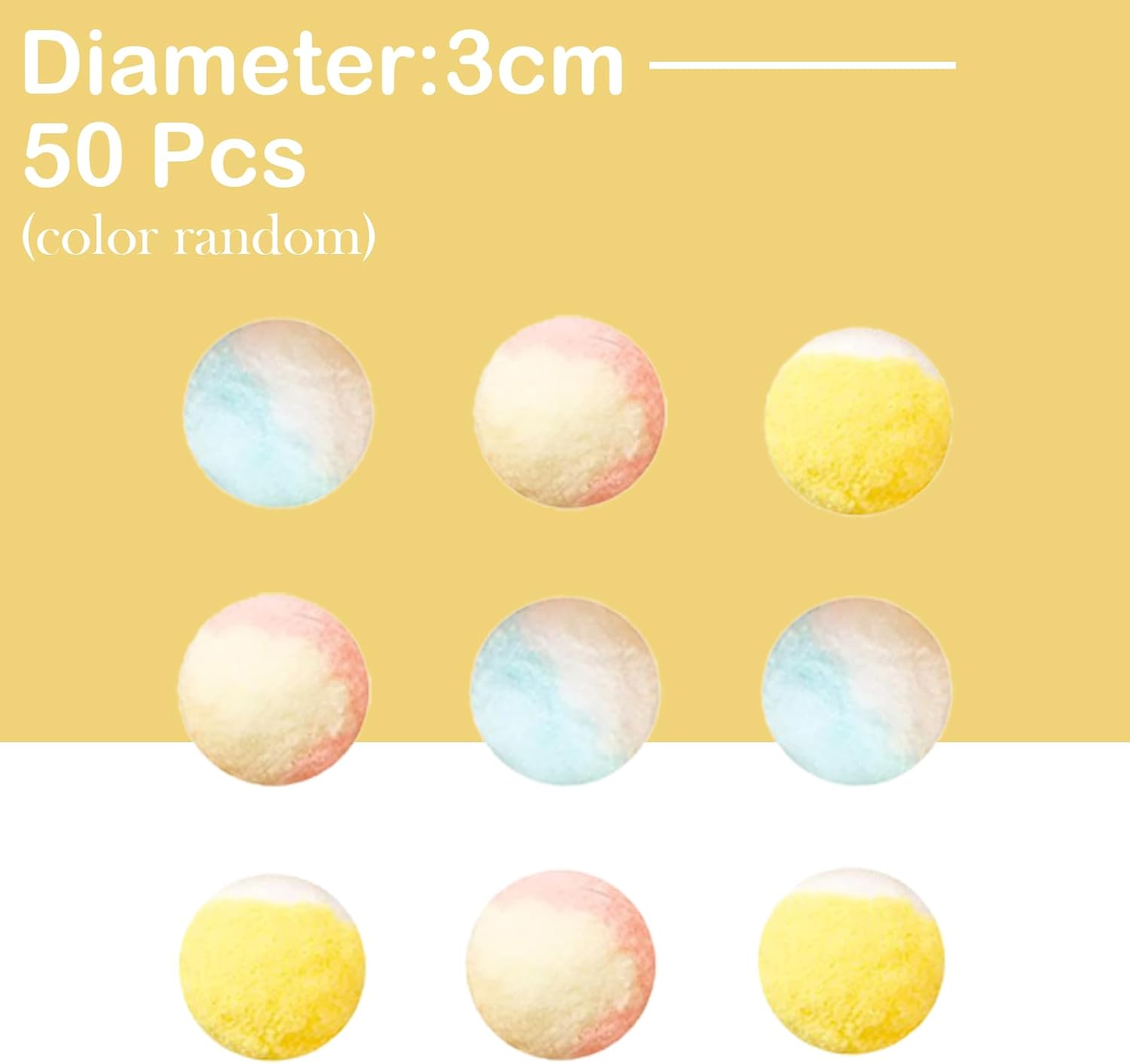Cat Toy Balls, 50Pcs Premium Soft Pom Pom Balls for Kittens, 1,2'' Funny Interactive Cat Pompom Toys for Bored Indoor Cats Playing Plush Ball for Craft DIY Decorations, Cute Kitten Kitty Toys