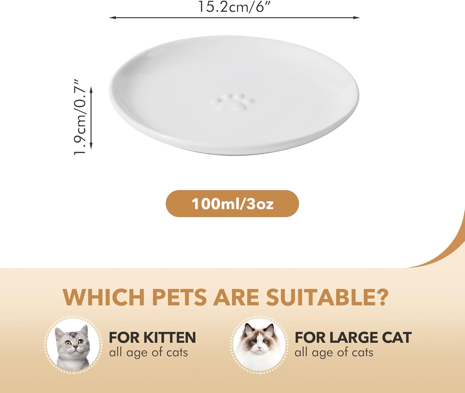 - Easy To Clean: Unlike elevated cat bowl or slow feeder bowl, the shallow design cat food dish won’t absorb food residue, and the ceramic material makes it not easily stick with food and keep clean.