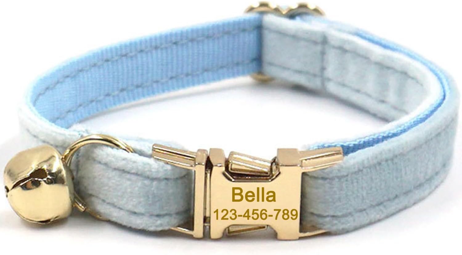 Personalized Cat Collar with Bells,Velvet Customized Small Cat Collar with Name Tag,Pet Collar with Name Phone Number Engraved ID Tags for Boy and Girl Kitten Cats (Sky Blue)