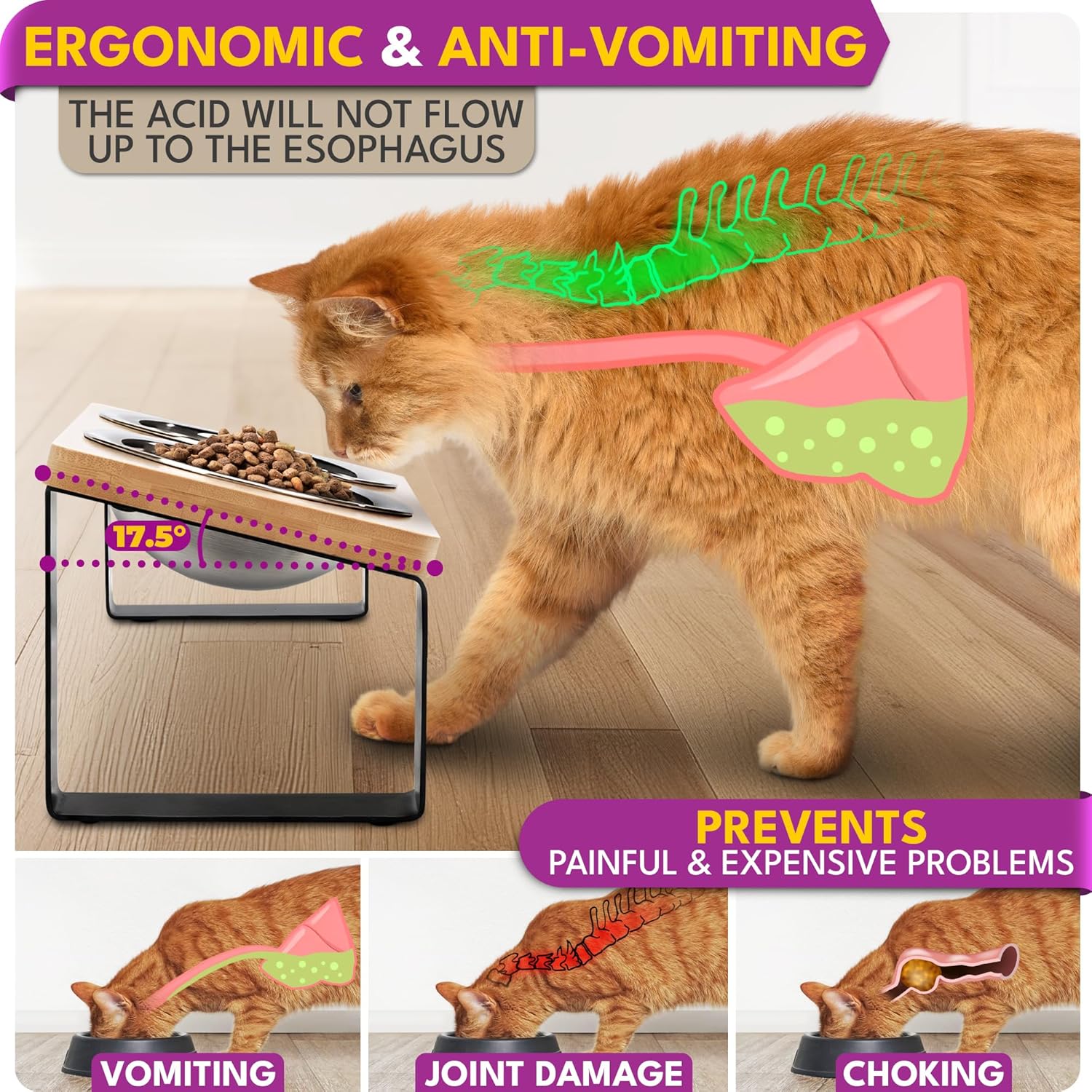 - π©ππ§-ππ£π£π₯π’π©ππ π₯πππ¦ππ πππ§ ππ’π’π ππ’πͺππ¦ - 17Β° Tilted Design for Optimal Comfort and Anti-Vomitive Benefits: Designed with your cat's well-being in mind, our cat bowls are tilted at a gentle 17-degree angle, promoting comfortable and stress-free eating sessions while also reducing the risk of vomiting. This ergonomic design helps prevent strain on your pet's neck and enhances overall mealtime enjoyment.