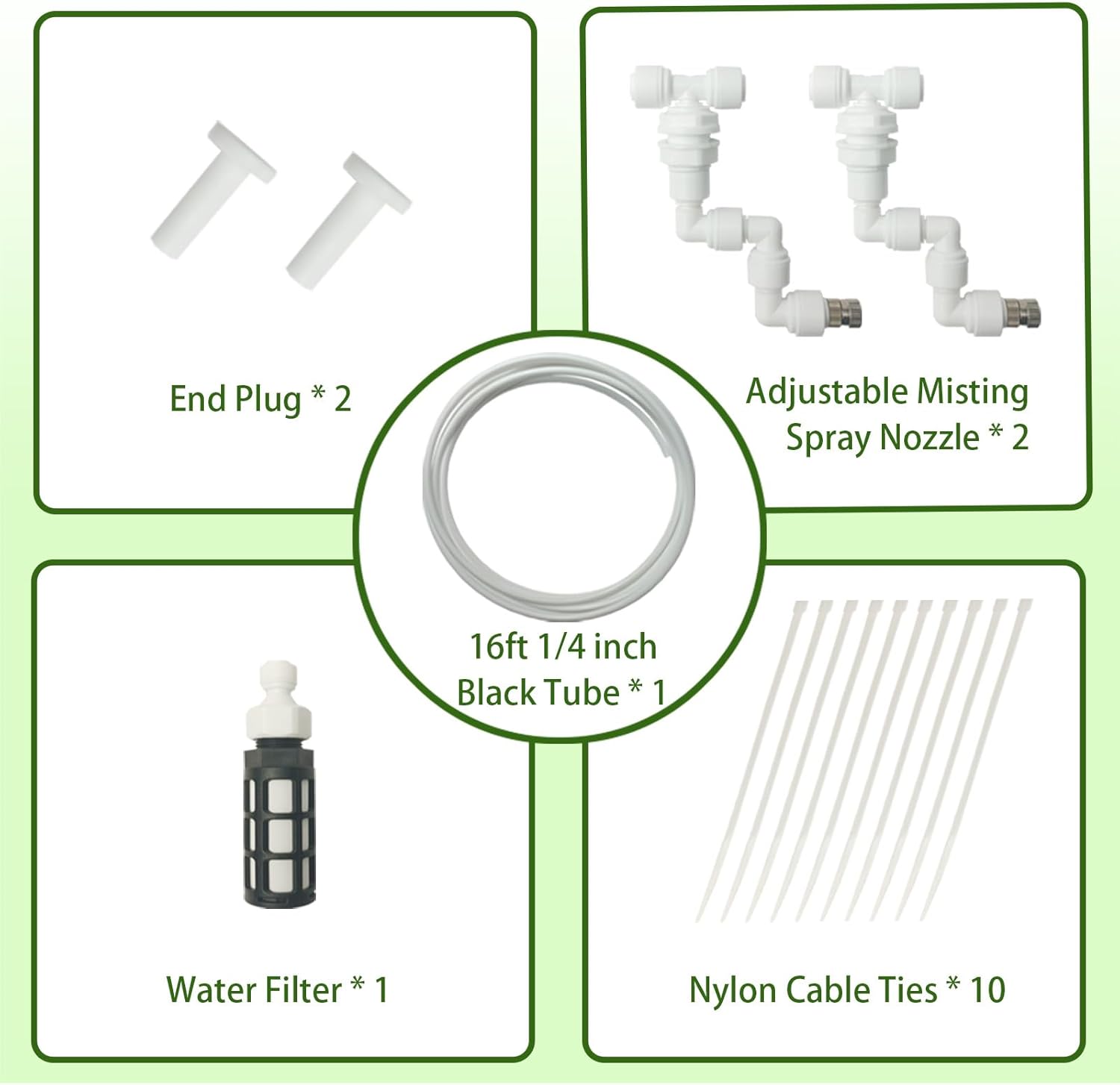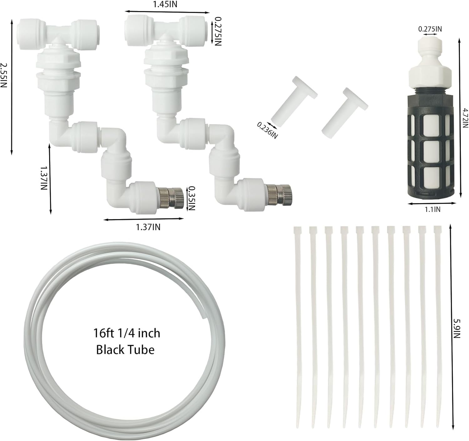 - Premium Accessories Package: Our product includes 2 adjustable reptile mister nozzles, along with a 16ft white tube, 10*nylon cable ties, 2*end plugs, and a water filter, offering everything you need to upgrade or customize your reptile misting system setup