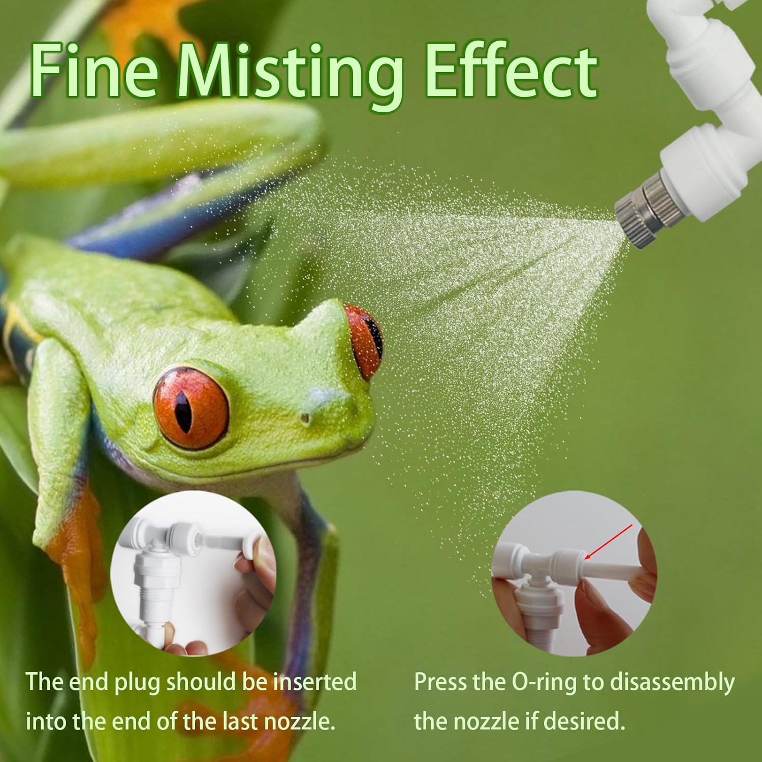- Effortless Setup with Clean Water Benefits: Installing the reptiles misting nozzle is simple: connect it to the tube, set the angle, and the misting starts. The included water filter ensures clean water, which is essential for maintaining a healthy environment in your reptile tank or enclosure
