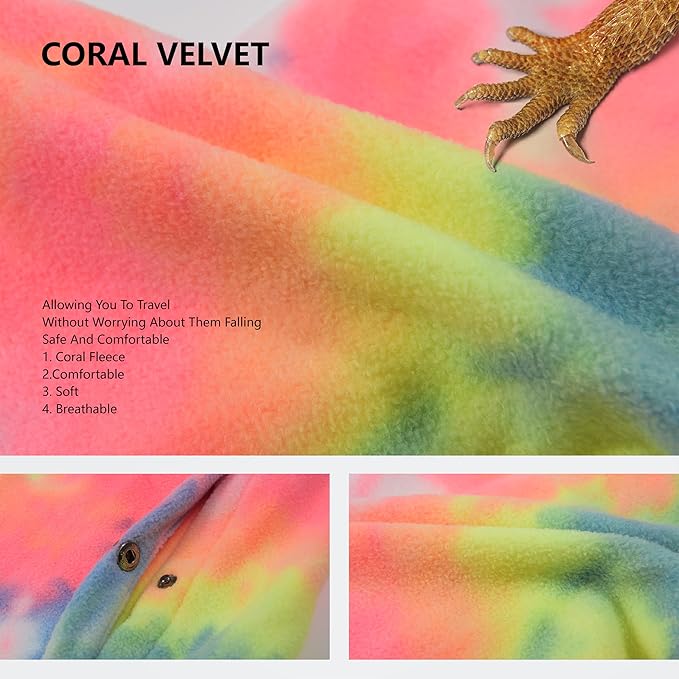 - BEARDED DRAGON CARRIER: The Carrier with Adjustable Shoulder Strap is made of coral fleece, Comfortable, Soft and breathable, Allowing you to travel with your pet without worrying about them falling off your shoulder, Safe and comfortable; Bearded Dragon is a variable temperature animal, No only indoors, But also it's outdoor or outdoor is helpful for maintaining the core temperature of Bearded Dragon. At the same time, it is also a fashionable decoration.