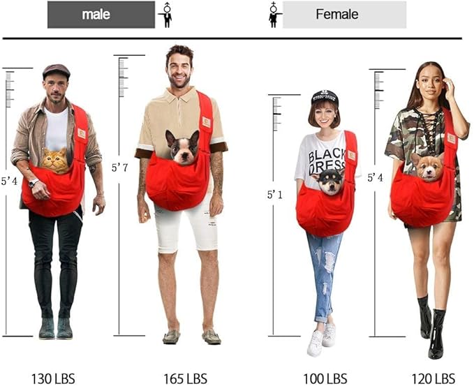Tomkas Small Dog Sling Carrier - Zipper Pocket & Classic Strap - for 3-10 lbs Pets(Red)