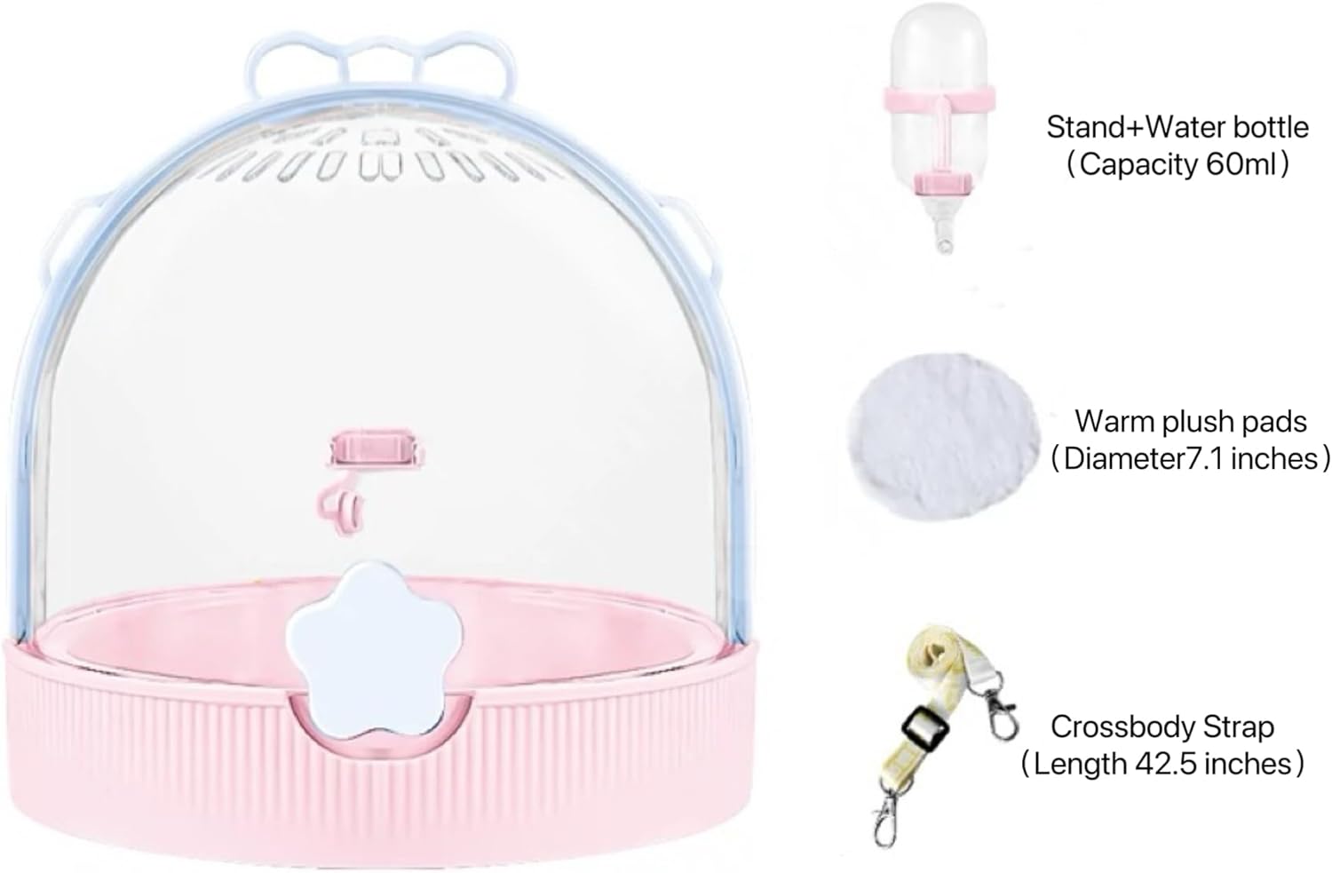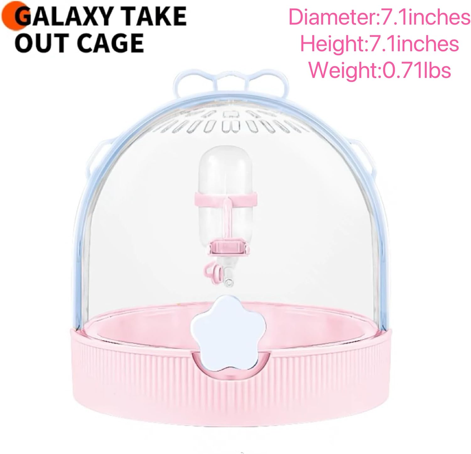- 【Vivid shape and Quality Materials】Our travel carrier cage features a unique dome shape. Transparent all around, making every cute moment of your pet invisible. The cage is made of delicate PS material, stains is not easy to adhere, safe and durable, one wipe can remove stains. Every corner is polished smooth and flat. Safe and comfortable living environment for small pets, large angle opening and closing design makes cleaning easier