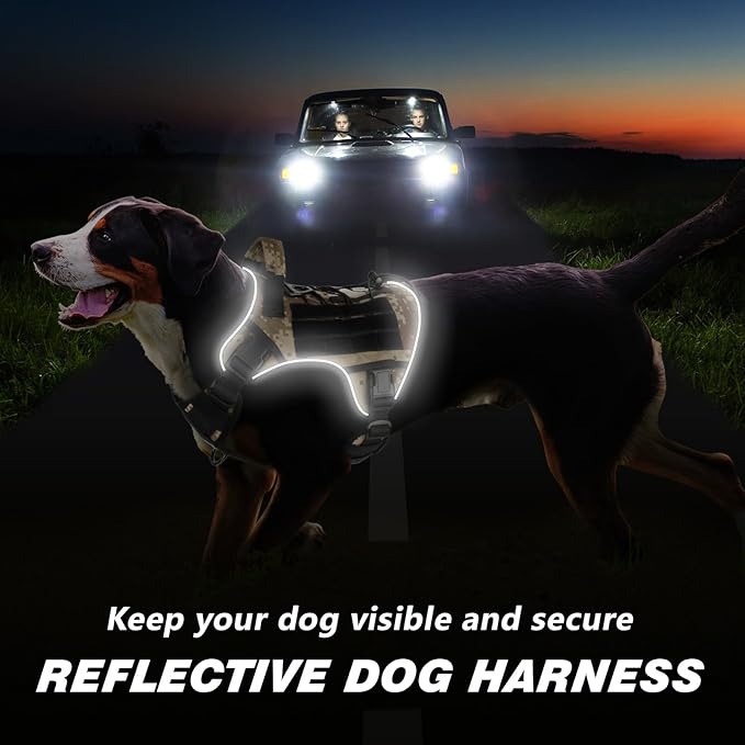 WINGOIN Tactical Dog Harness for Large Dogs, Heavy Duty No Pull Dog Harness with Handle, Adjustable Reflective Military K9 German Shepherd Big Size Dog Vest for Walking, Hunting, Camo (L)