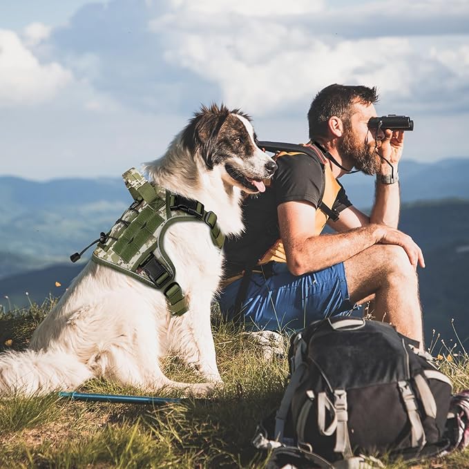 WINGOIN Tactical Dog Harness for Medium Dogs, Heavy Duty No Pull Dog Harness with Handle, Adjustable Reflective Military K9 Pet Vest for Pitbull, Female, Male, Walking, Hunting, Green Camo (M)