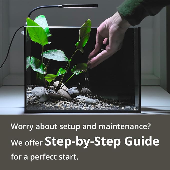 NICREW 2.5 Gallon Nano Nature Aquarium Kit, Ultra-Clear Rimless Desktop Fish Tank with Light, Filter, Gravel and Rock, Perfect for Small Fish, Shrimp, or Betta, Complete Version, Black