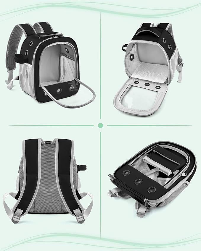 - Two Types of Window Design:1.Transparent half - open window: Alleviates pet anxiety and boosts security. Offers a wide view for pets to enjoy scenery,Facilitates owner's pet observation, interaction and communication; 2.Fully open window: Unzip the front of the backpack for easy pet placement, retrieval and pad changing; in outdoor activities, it helps pets get close to nature, and in pet hospitals and stores, it enhances pet social interaction and enables owners to carry pets out when needed